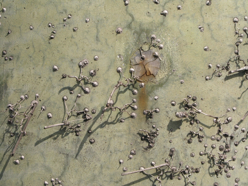 Vestiges de lierre sur poteau pas téléphonique légèrement fracturé |
